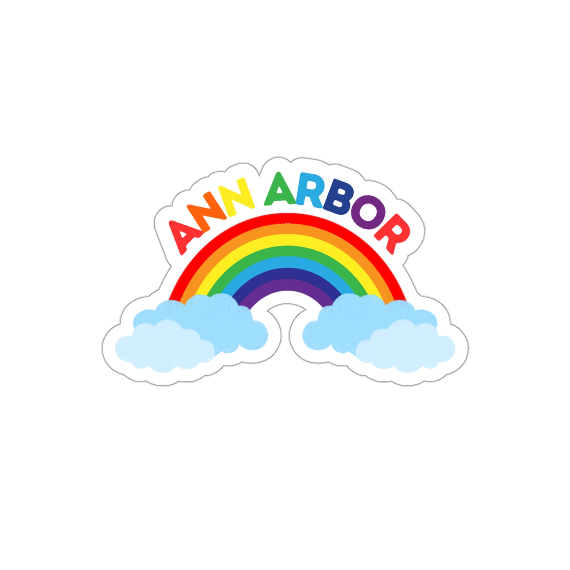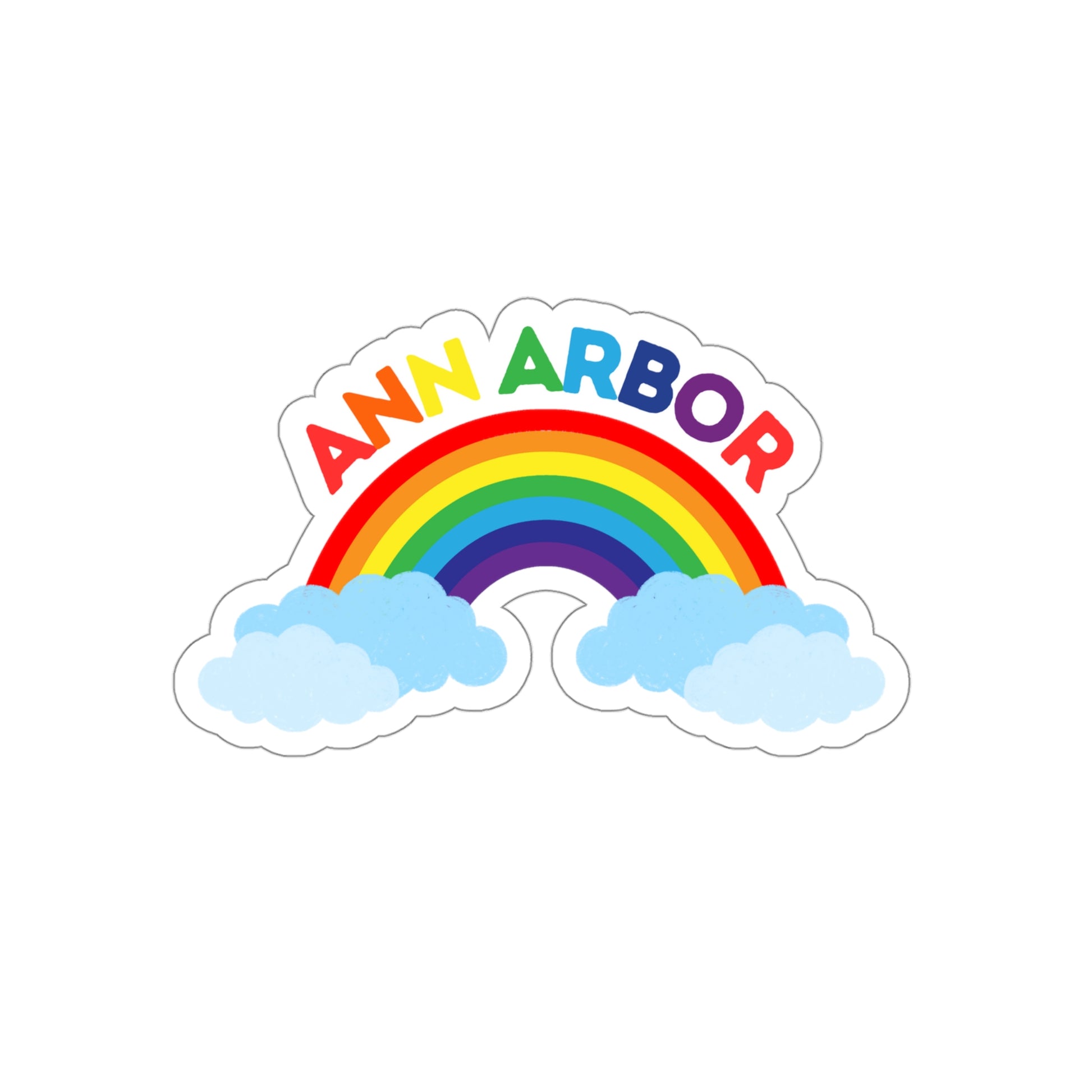 The Ann Arbor Rainbow Die-Cut Stickers are great for both indoor and outdoor use as they are made with thick, resistant, laminate vinyl material with easy-peel backing and matte finish.