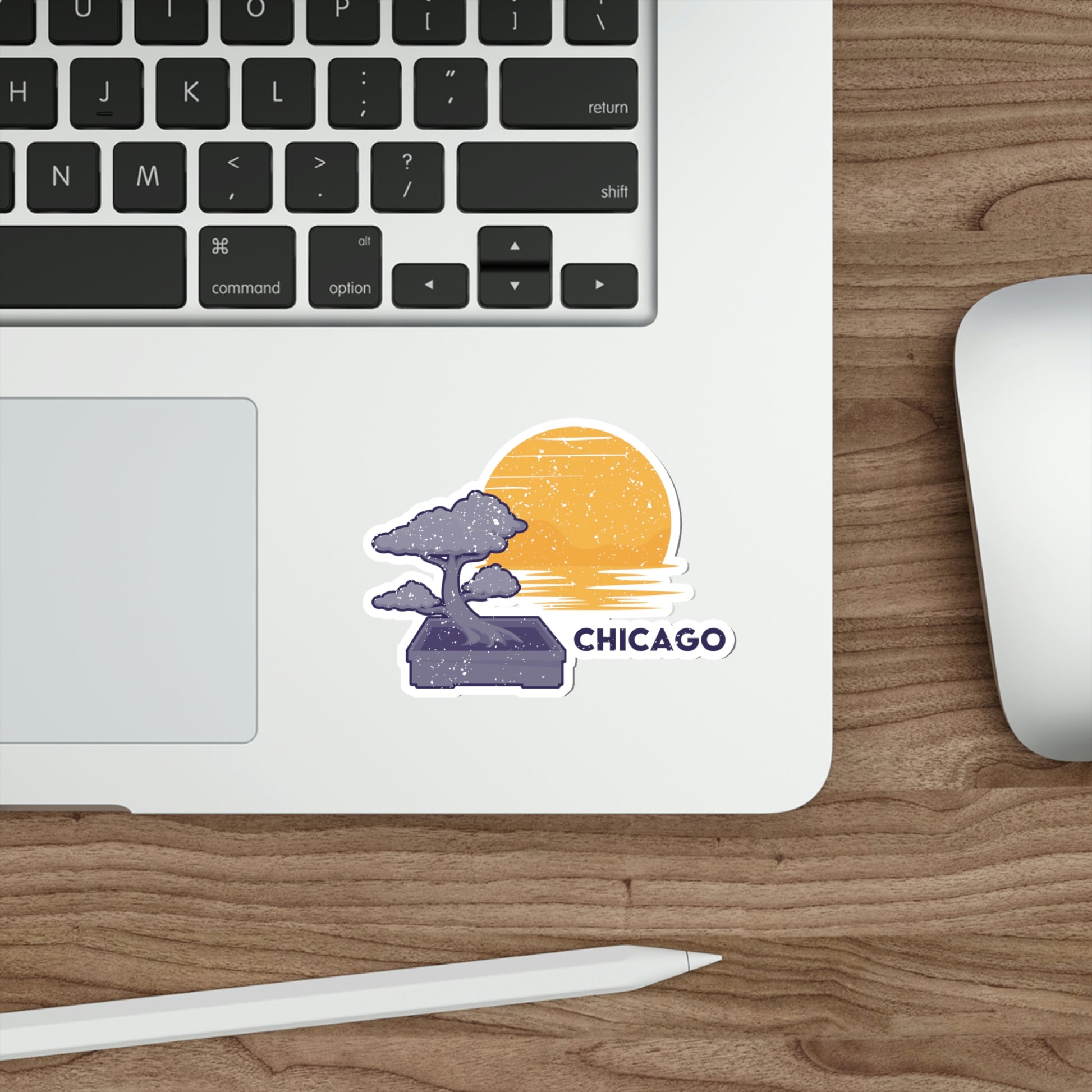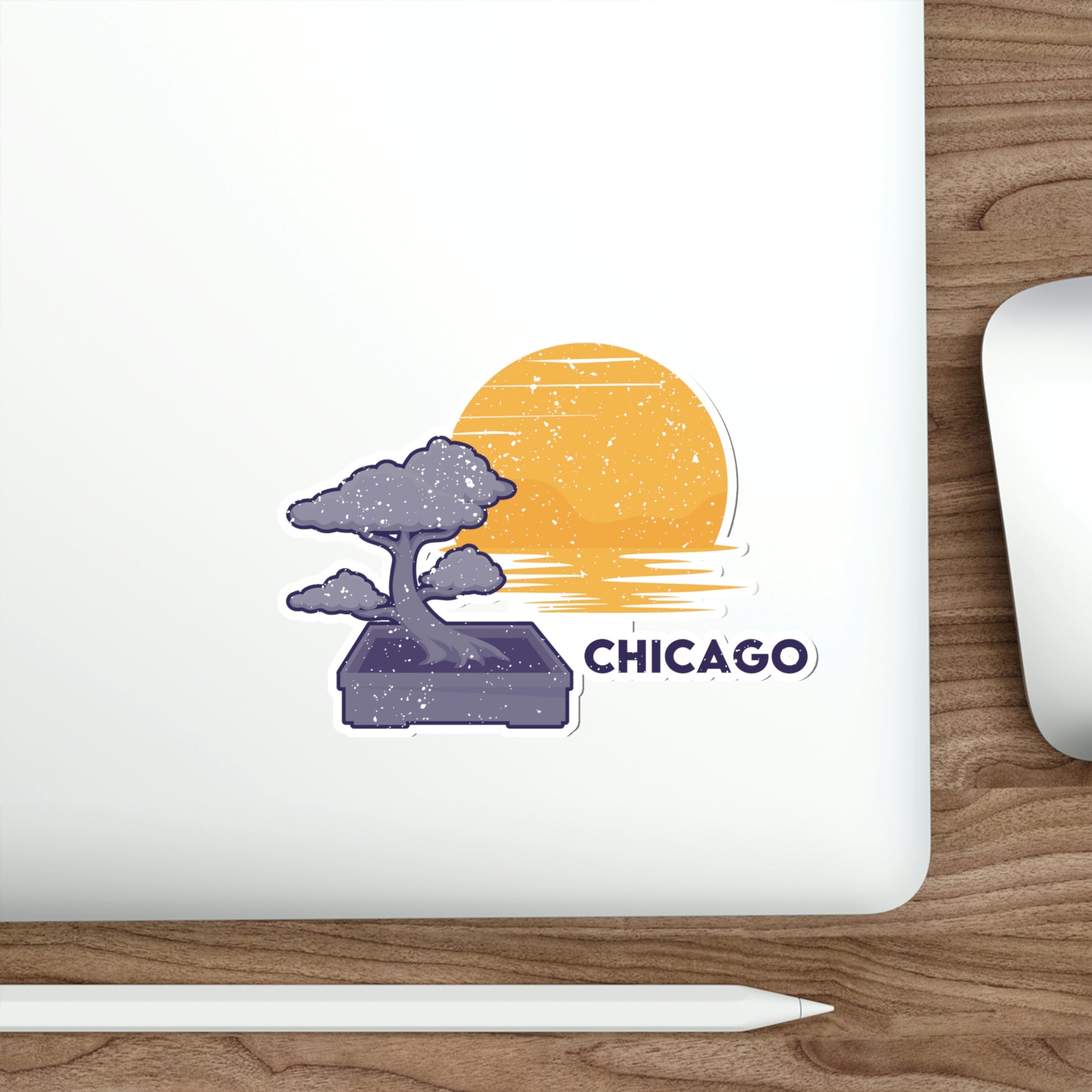 The Chicago Bonsai Tree Die-Cut Stickers are great for both indoor and outdoor use as they are made with thick, resistant, laminate vinyl material with easy-peel backing and matte finish.