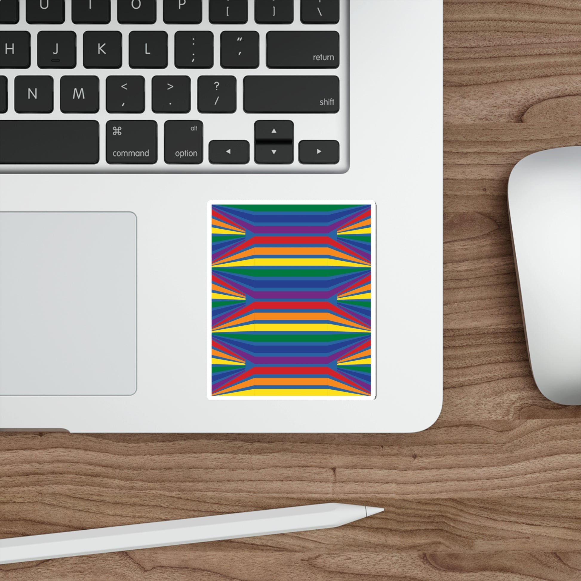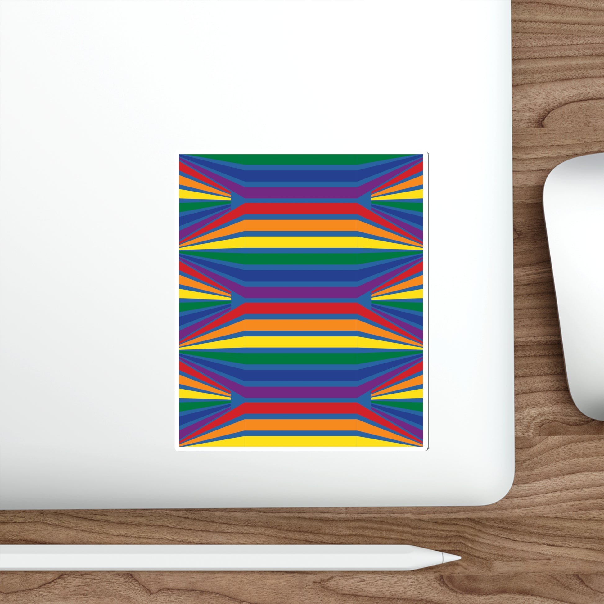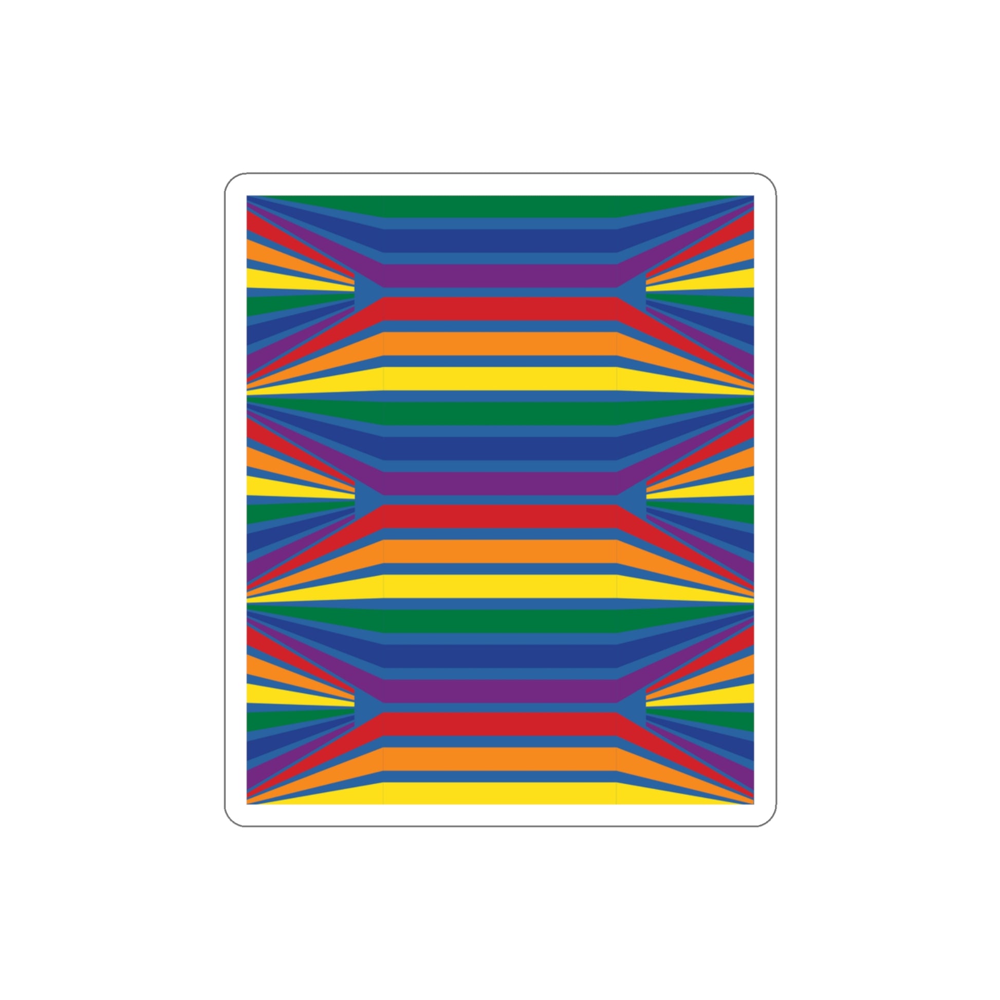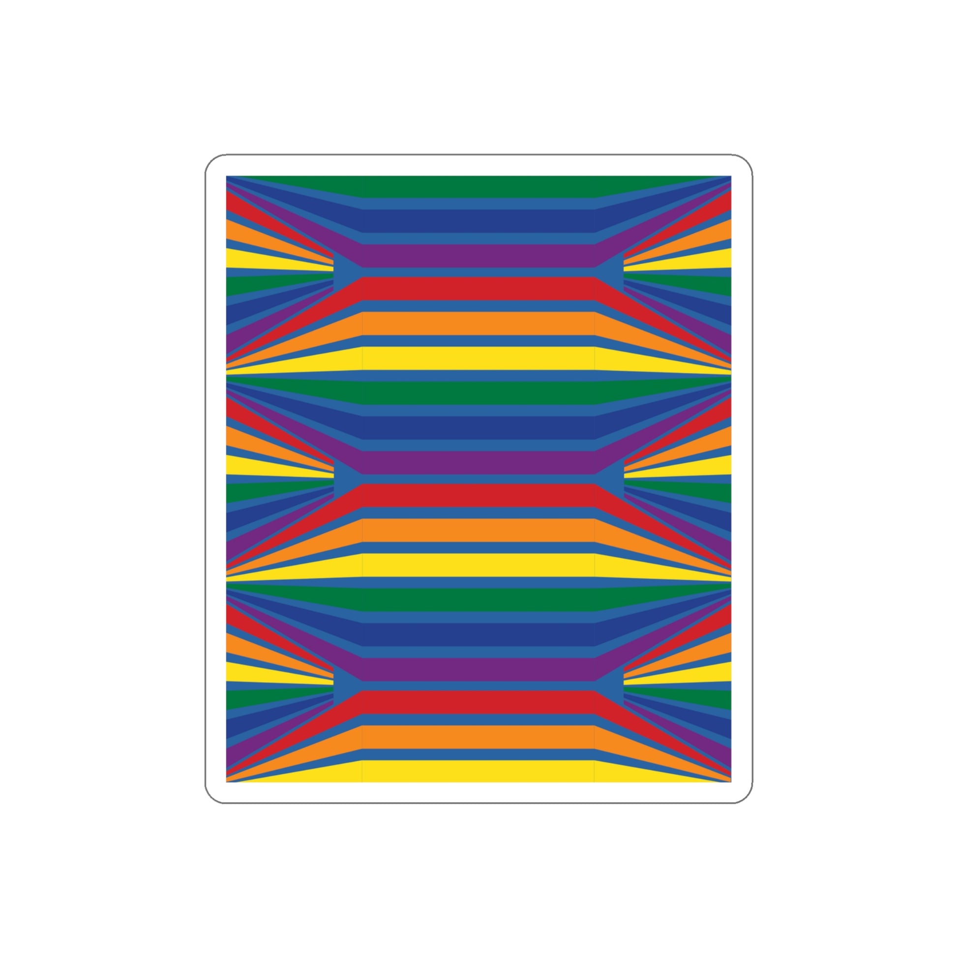 The Geometric Rainbow Pattern Die-Cut Stickers are great for both indoor and outdoor use as they are made with thick, resistant, laminate vinyl material with easy-peel backing and matte finish.