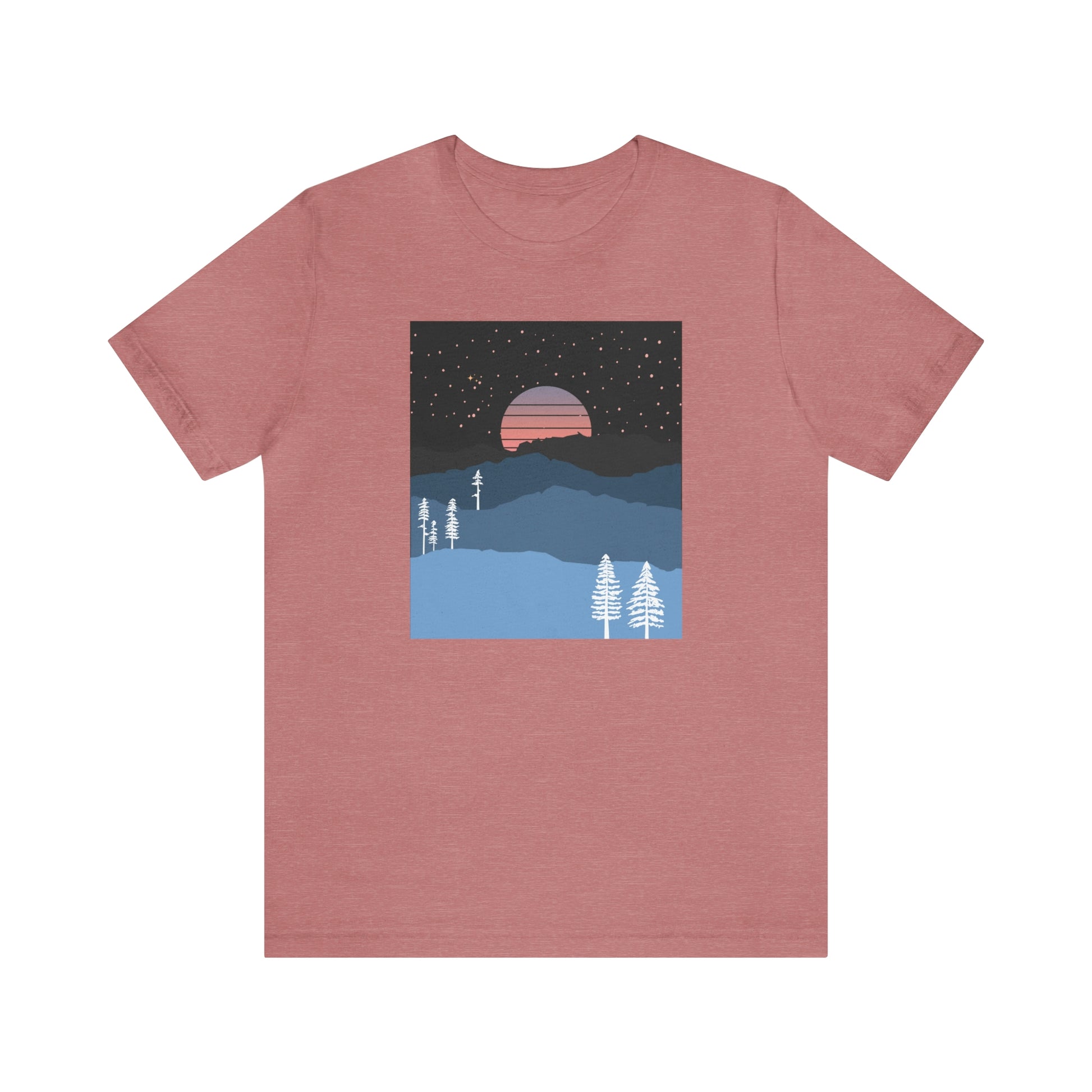 If you love the outdoors this moon rise over the mountain night sky is the t-shirt for you!