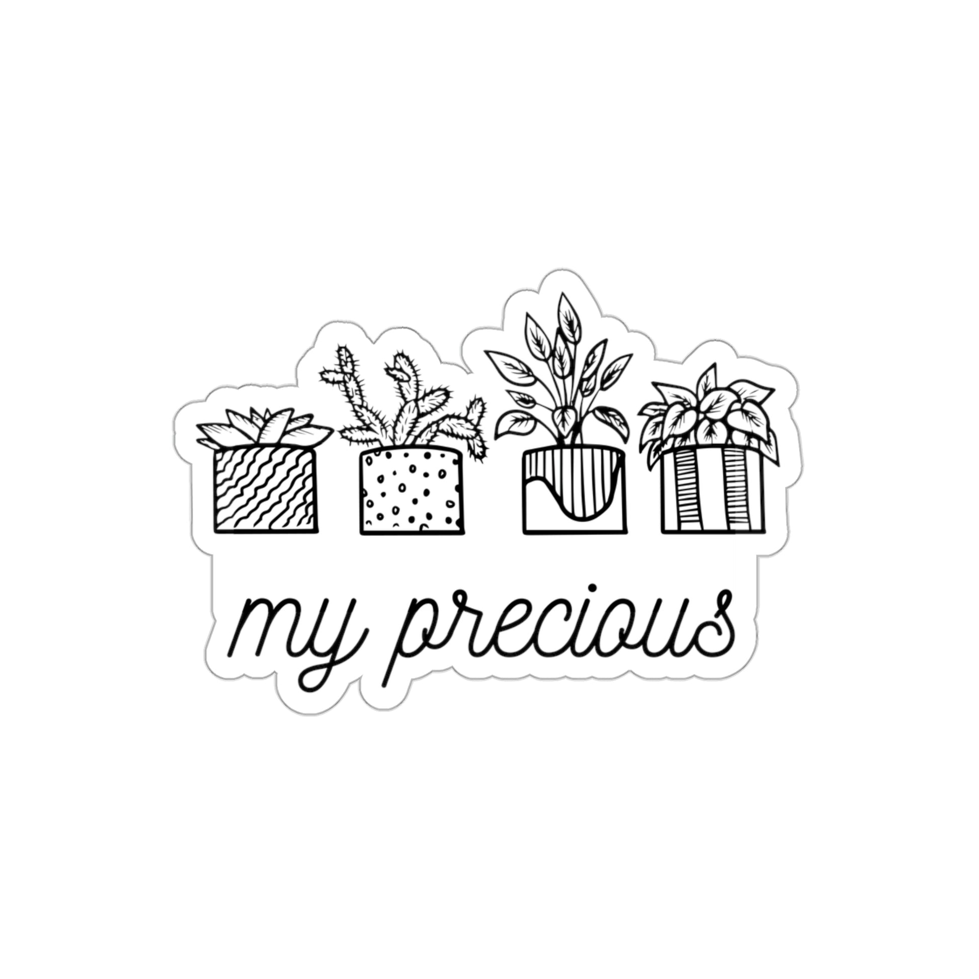 The My Precious Plants Die-Cut Stickers are great for both indoor and outdoor use as they are made with thick, resistant, laminate vinyl material with easy-peel backing and matte finish.
